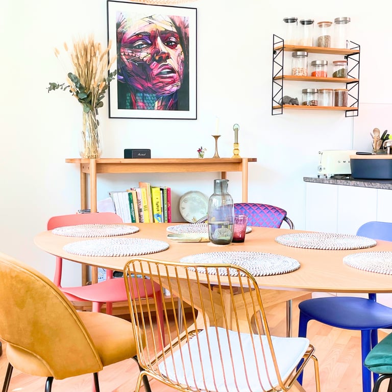 The aim of this apartment project was to create a stylish and sophisticated home that reflects the couple’s unique personalities, their joy for life, and their cultural backgrounds. Having recently relocated, it was important to design a space that truly felt like their own. The concept focused on achieving a balance between modern freshness and timeless comfort, resulting in a calm and harmonious sanctuary. The apartment was designed to offer an inviting atmosphere—ideal for relaxing, entertaining, and feeling deeply connected to the space. Colour was introduced thoughtfully throughout, both through wall finishes and carefully selected furniture, adding character and vibrancy while maintaining a sense of cohesion and balance.
