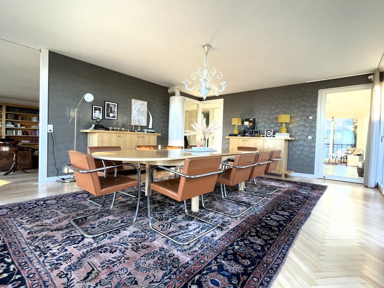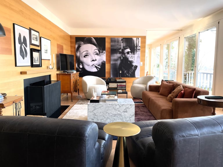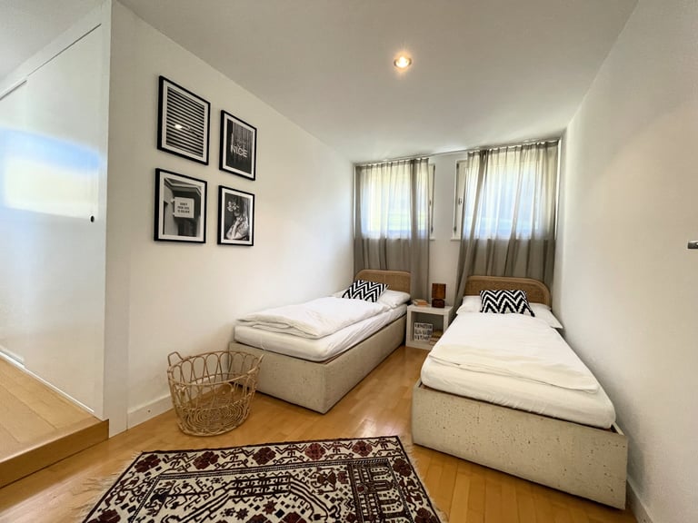 We had the pleasure of working on a beautiful family residence on the Pfänder in Bregenz, reimagined as a holiday rental after standing unoccupied for some time. The house already contained a curated collection of furniture, decorative pieces, books, and carpets, providing a strong foundation for the design.